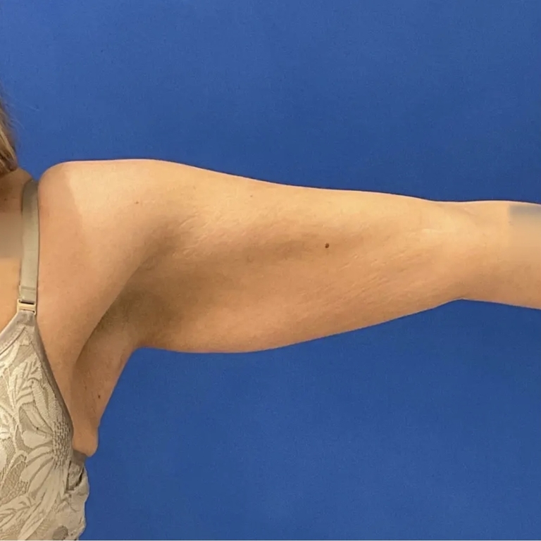 31-year old 5'7" patient 5 months after liposuction w/ Renuvion on upper arms (aka non-surgical armlift). Note: results will continue to improve for several more months.