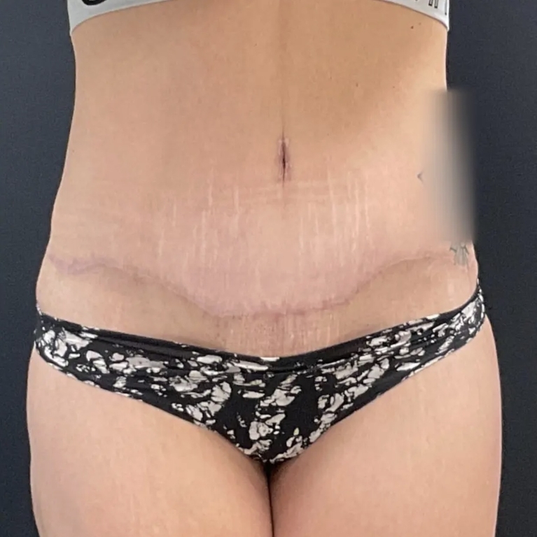 47-year old mother of 3 via C-Section 6 months after mommy makeover of tummy tuck & breast lift. Note: At scars are midway to maturity and will fade more over next 6 months with continued aftercare.