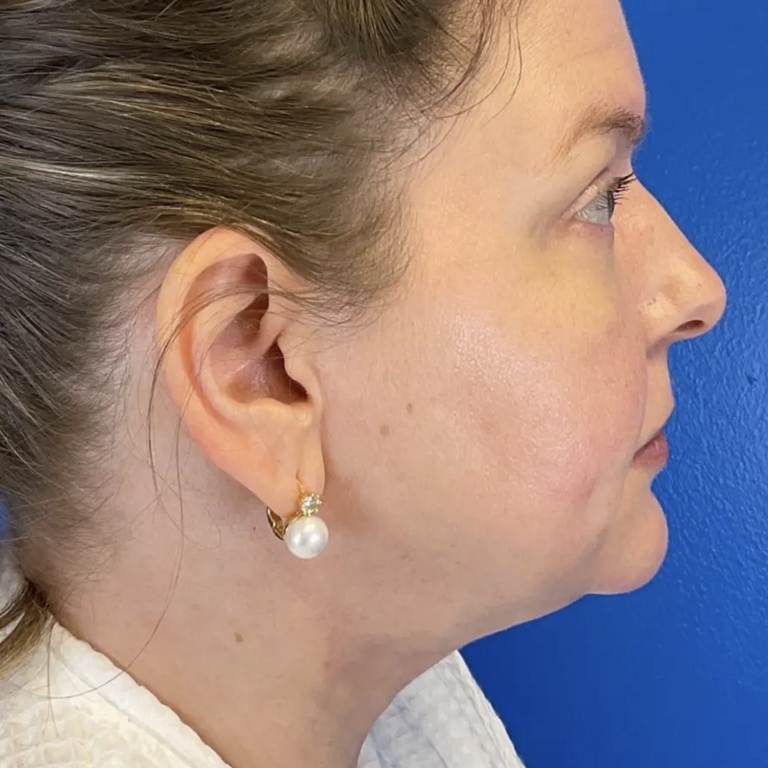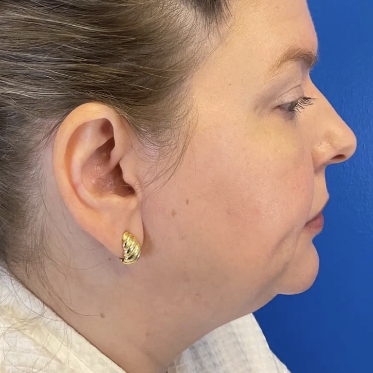 41-year old patient just 1 month after non-surgical facelift using liposuction w/ Renuvion to improve jawline definition. Skin contraction results will continue to improve until 6-9 months post-op.