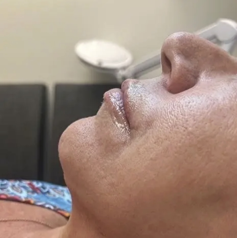 64-year old patient after one syringe of dermal filler injected into lips. Note: results are shown right after the injection and will continue to settle over 2-3 days.